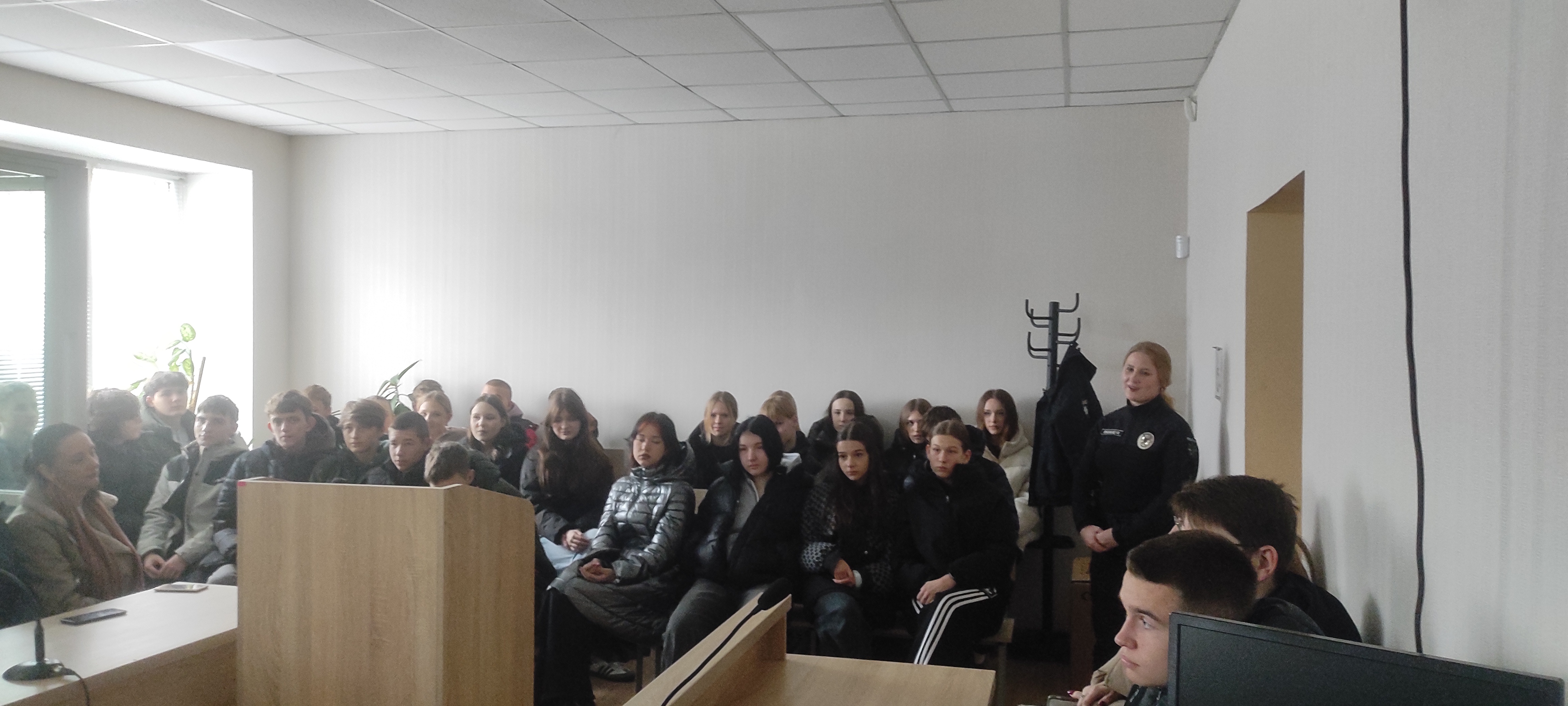 Основною метою зустрічі було обговорення відповідальності неповнолітніх, їх права та обов’язки. І не оминули теми БУЛІНГУ. Почули розповідь про судову мантію, нагрудний знак , богиню правосуддя Феміду та для чого їй пов’язка на очах, меч і терези.